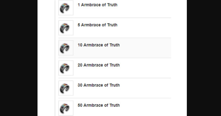 Armbrace of Truth is also referred to as the Ambrace and mostly you will find them misspelled that way. As there is a limit of 100 Platinum a player can hold at a time, Ambraces like other secondary currencies are used for trades with higher value.